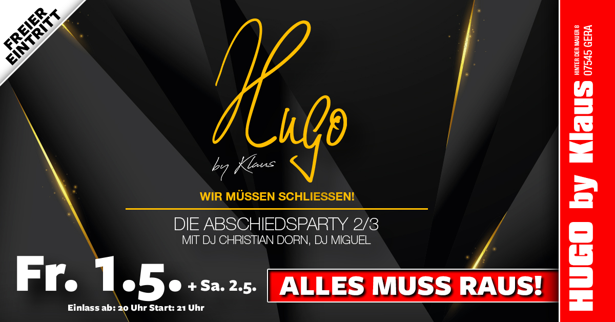 Hugo by Klaus - Closing Party 2/3 // Eintritt frei